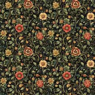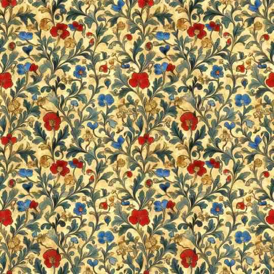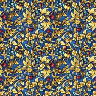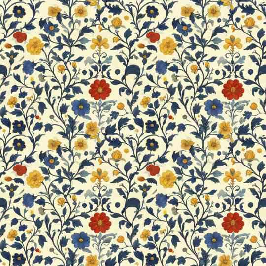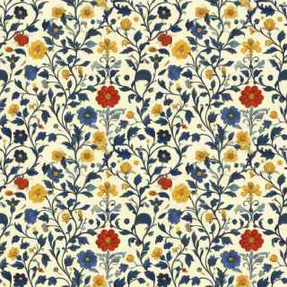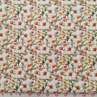 VINES & TINY RED YELLOW BLUE FLOWERS ON CREAM - QUILTERS BASKET - CS 3238