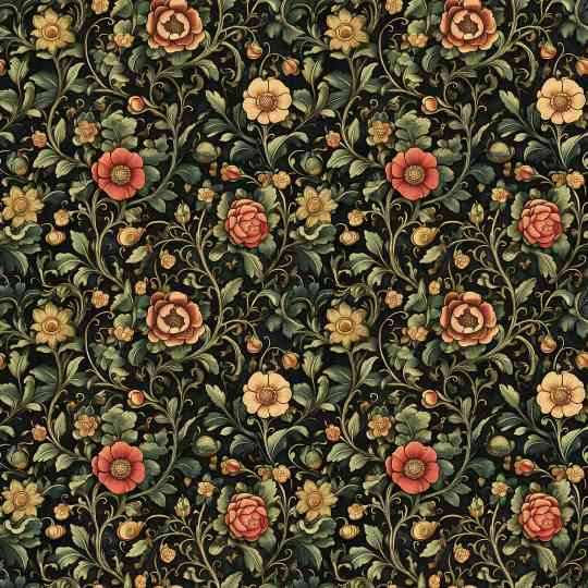 VINES & TINY RED FLOWERS ON TAN - QUILTERS BASKET - CS 3232
