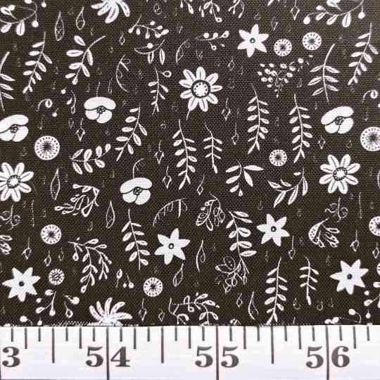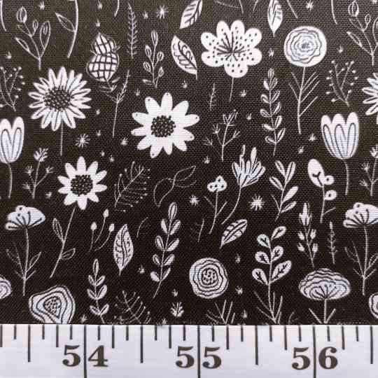 BLACK WITH SMALL WHITE FLOWERS & LEAVES - CS 2983